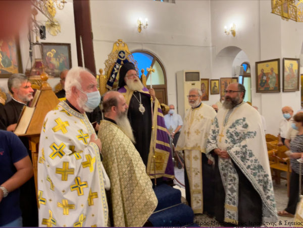 Στην ακολουθία του πανηγυρικού Αρχιερατικού Εσπερινού έλαβε μέρος ο Ιερός Κλήρος της πόλεως ενώ τους θεσπέσιους ύμνους της εορτής απέδωσαν οι χοροί ιεροψαλτών με επικεφαλής τον Πρωτοψάλτη και Δ/ντή της Σχολής Βυζαντινής Μουσικής της Ι. Μητροπόλεως «Άγιος Ανδρέας ο Κρήτης» κ. Ιωάννη Αρώνη και τον Ιεροψάλτη του πανηγυρίζοντος ναού κ. Γεώργιο Καπαράκη, και παρέστησαν πολλοί ευσεβείς χριστιανοί, τηρώντας τα μέτρα προστασίας από την πανδημία, μεταξύ των οποίων ήταν ο Ομότιμος Καθηγητής της Φιλοσοφικής Σχολής του Παν/μίου Αθηνών συντοπίτης μας κ. Χριστόφορος Χαραλαμπάκης, η Αντιδήμαρχος κ. Μαρία Ρουμελιωτάκη και ο Αντιπρόεδρος του Δημοτικού Συμβουλίου Ιεράπετρας κ. Γεώργιος Αγγελάκης.