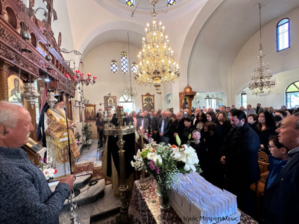 Τέλος, ο Σεβασμιώτατος υπογράμμισε ότι ο Άγιος Γρηγόριος ο Παλαμάς αποτελεί φωτεινό παράδειγμα άσκησης και οδοδείκτης πνευματικής πορείας και αγώνα για την κάθαρση από τα ψυχοκτόνα πάθη κατά την κατανυκτική περίοδο της Αγίας και Μεγάλης Τεσσαρακοστής, και ευχήθηκε όλοι να προετοιμασθούμε κατάλληλα για να αξιωθούμε να να βιώσουμε τα Άχράντα Πάθη του Νυμφίου Χριστού και να συνεορτάσουμε την Αγία Ανάστασή Του.