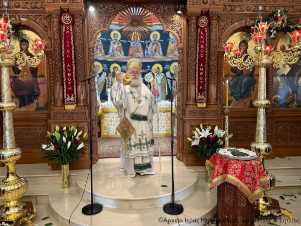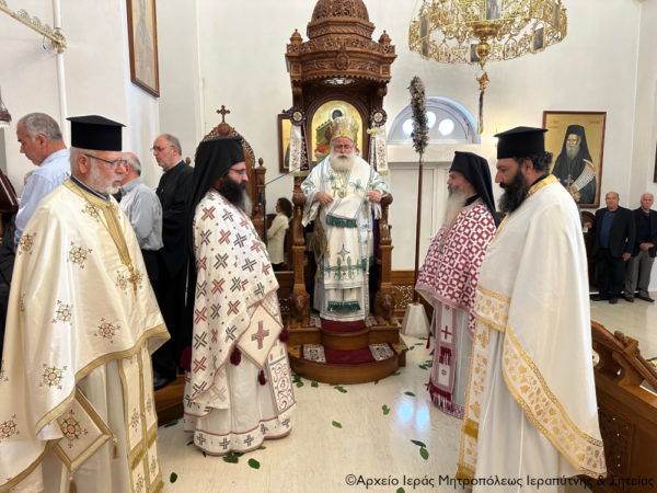 Ο Σεβασμιώτατος Μητροπολίτης Ιεραπύτνης και Σητείας κ. Κύριλλος χοροστάτησε κατά την Ακολουθία του Όρθρου και στη συνέχεια τέλεσε τη Θεία Λειτουργία και κήρυξε κατάλληλα τον θείο λόγο.