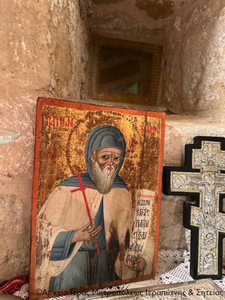 Επίσης, ο Σεβασμιώτατος έκανε λόγο στην ευλάβεια των προγόνων μας που ανήγειραν τον πανηγυρίζοντα ιστορικό μεταβυζαντινό ναό, στην τοιχοποιϊα του οποίου υπάρχουν δύο σχέδια καραβιών, και στη σημασία του ασκητικού φρονήματος του Μεγάλου Αντωνίου στην εποχή της μετανεωτερικότητας που ζούμε, υπογραμμίζοντας ότι δεν σώζει ο τόπος αλλά ο τρόπος ζωής μας. Και ο Σεβ. Μητροπολίτης κατέληξε ως εξής: «Ας παρακαλέσουμε όλοι τον άγιο Αντώνιο να πρεσβεύει στον Κύριό μας Ιησού Χριστό να παμένουμε ασφαλείς εντός τους σκάφους της Εκκλησίας που οδηγεί στο λιμάνι της Βασιλείας των Ουρανών».