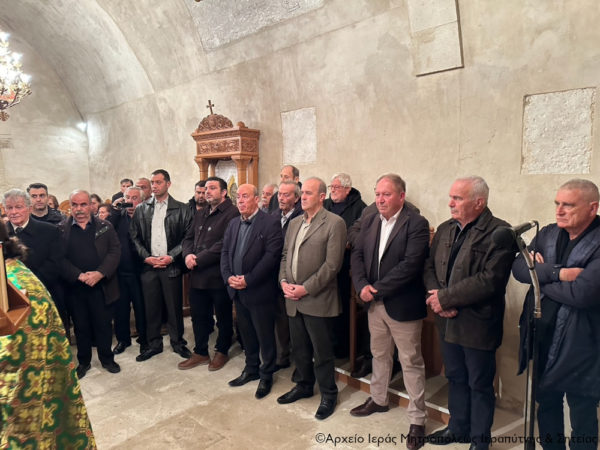 Στον Αρχιερατικό Εσπερινό έλαβαν μέρος οι Αιδεσιμώτατοι Πρωτ. Σάββας Λιναρδάκης, προϊστάμενος της Ενορίας Παναγίας Ελεούσης και Αρχιερατικός Επίτροπος Β΄ Αρχιερ. περιφέρειας, Οικονόμος π. Ελευθέριος Δαργάκης, Εφημέριος Μύρτου, Ιερεύς Εμμανουήλ Μπιτσακάκης, Εφημέριος των Ενοριών Μύθων και Μουρνιών και ο Διάκονος Θεμιστοκλής Μπεϊνάς, ενώ εκκλησιάστηκαν ο Δήμαρχος Ιεράπετρας κ. Εμμανουήλ Φραγκούλης, ο Πρόεδρος του Δημοτ. Συμβουλίου κ. Νικόλαος Τζουμάκας, ο Αντιδήμαρχος κ. Γεώργιος Γιακουμάκης, ο Πρόεδρος του Λιμενικού Ταμείου κ. Μιχαήλ Μπαχλιτζανάκης, ο επικεφαλής της μείζονος μειοψηφίας του Δήμου Ιεράπετρας κ. Ιωάννης Γουλιδάκης, οι Πρόεδροι των Τοπικών Κοινοτήτων Μύρτου κ. Αλέκος Παντελάκης, Γδοχίων κ. Νικόλαος Σπυριδάκης, Μουρνιών κ. Εμμανουήλ Δαμασκηνάκης και Μύθων κ. Νικόλαος Σιγανός, ο Πρόεδρος του Πολιτιστικού Συλλόγου Μύρτου κ. Μιχαήλ Παπαγεωργίου, ενορίτες και άλλοι πιστοί της περιοχής.