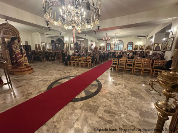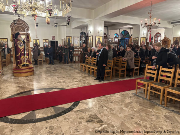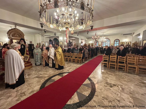Με την πρέπουσα λαμπρότητα τελέσθηκε το απόγευμα του Σαββάτου 1 Φεβρουαρίου 2024 ο Μέγας πανηγυρικός Αρχιερατικός Εσπερινός της εορτής της Υπαπαντής του Κυρίου στον φερώνυμο Ιερό Ναό, που βρίσκετια στο ισόγειο του μεγαλοπρεπούς ιερού Ενοριακού Ναού Ευαγγελισμού της Θεοτόκου πόλεως Σητείας.