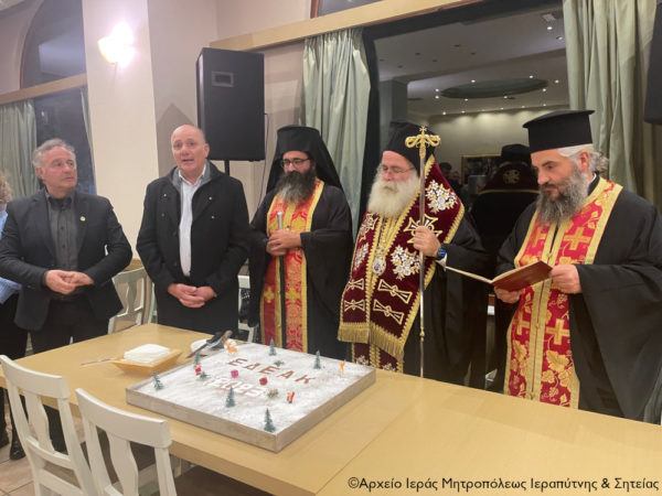 Ο Μητροπολίτης Ιεραπύτνης και Σητείας κ. Κύριλλος ανταποκρινόμενος σε ευγενική πρόσκληση του Προέδρου των Εθελοντών Διασωστών Εκτάκτων Αναγκών Κρήτης, προσήλθε χθες σε αίθουσα κεντρικού Ξενοδοχείου της Σητείας και ευλόγησε την Βασιλόπιτα.