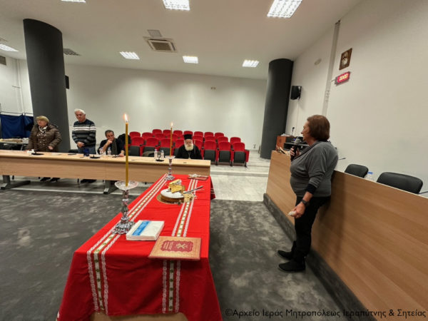 Αμέσως μετά το πέρας της τελετής ο Σεβ. κ. Κύριλλος ευχήθηκε εγκάρδια στην Πρόεδρο, στα μέλη και στους παριστάμενους φίλους της Μορφωτικής Στέγης καλή και ευλογημένη χρονιά με υγεία και επιτυχία στις πολιτιστικές και λοιπές δράσεις του σωματείου και πρότεινε να υπάρξει διασύνδεση και συνεργασία όλων των βιβλιοθηκών που λειτουργούν στα όρια του Δήμου για τη διευκόλυνση του βιβλιόφιλου κοινού.
