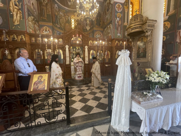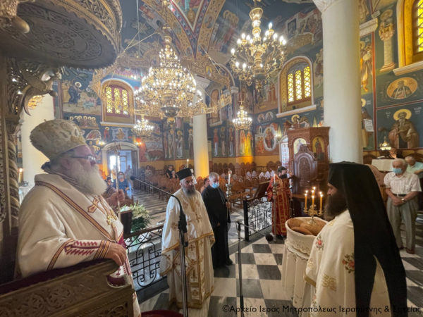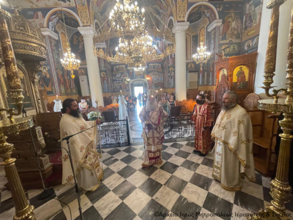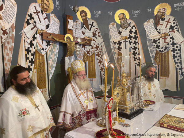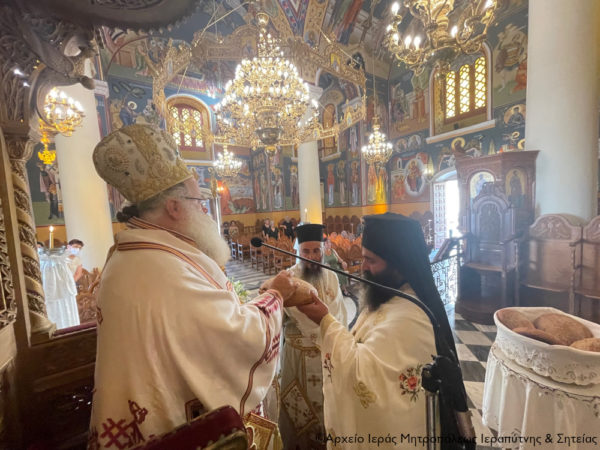 Ο Σεβασμιώτατος Μητροπολίτης Ιεραπύτνης και Σητείας κ. Κύριλλος χοροστάτησε στην ακολουθία του Όρθρου, ευλόγησε τους προς τιμήν του νέου Ιερομάρτυρος προσφερόμενους άρτους και στη συνέχεια τέλεσε την Θεία Λειτουργία, κήρυξε τον θείο λόγο και τέλεσε το τεσσαρακονθήμερο μνημόσυνο του μακαριστού Ιωάννου Τσιριλάκη.