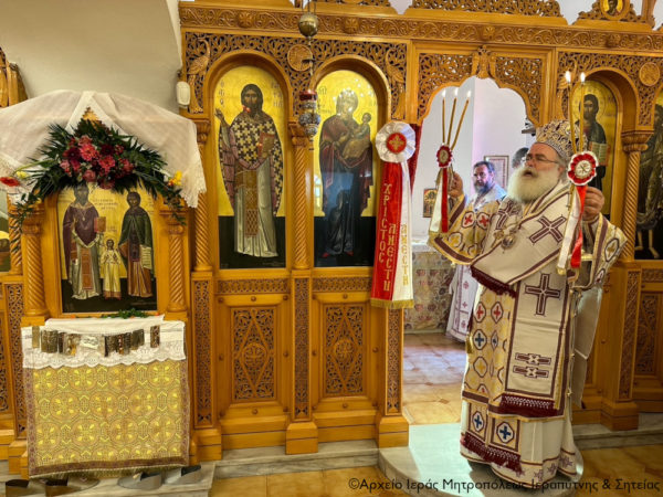 Στο σύντομο σήρυγμά του ο Σεβασμιώτατος αναφέρθηκε στη σύντομη επί γης ζωή και το μαρτύριο των τριών νεοφανών αγίων που μαρτύρησαν κατά τα πρώτα χρόνια της περιόδου της Τουρκοκρατίας, την Μεγάλη Παρασκευή πριν το Πάσχα του 1463, στη Θερμή της Λέσβου, όπου τους κατέσφαξαν οι αλλόθρησκοι Τούρκοι κατακτητές και στη συνέχεια έβαλαν φωτιά στο μοναστήρι τους.