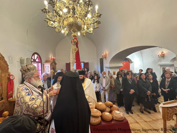 Ανήμερα της εορτής ο Σεβασμιώτατος Μητροπολίτης Ιεραπύτνης και Σητείας κ. Κύριλλος χοροστάτησε στην Ακολουθία του Όρθρου και στη συνέχεια ιερούργησε, κήρυξε επίκαιρα τον θείο λόγο και ευλόγησε τους προσφερόμενους άρτους.