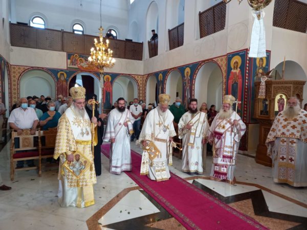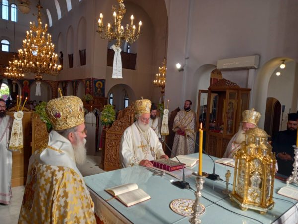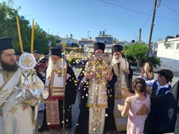Ο Σεβασμιώτατος Μητροπολίτης Ιεραπύτνης και Σητείας κ. Κύριλλος μετέφερε την εικόνα της Παναγίας της Ελεούσας στον πανηγυρίσαντα Ιερό Ναό Αγίου Ανδρέου στο Αρκαλοχώρι