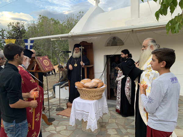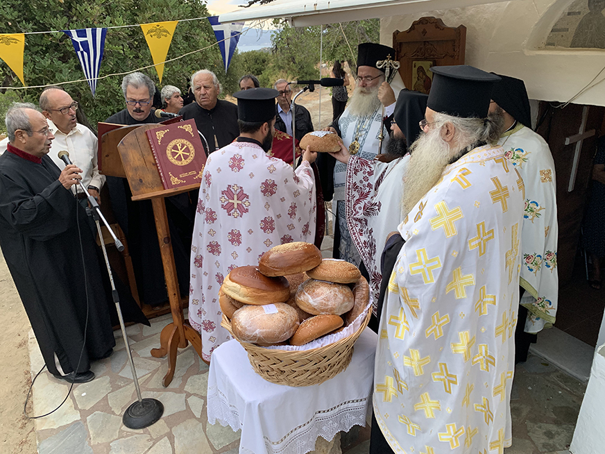 Στην ακολουθία χοροστάτησε ο Σεβ. Μητροπολίτης Ιεραπύτνης και Σητείας κ. Kύριλλος, ο οποίος ευλόγησε τους προσφερόμενους άρτους και κήρυξε επίκαιρα τον θείο λόγο στο προαύλιο του ναού.