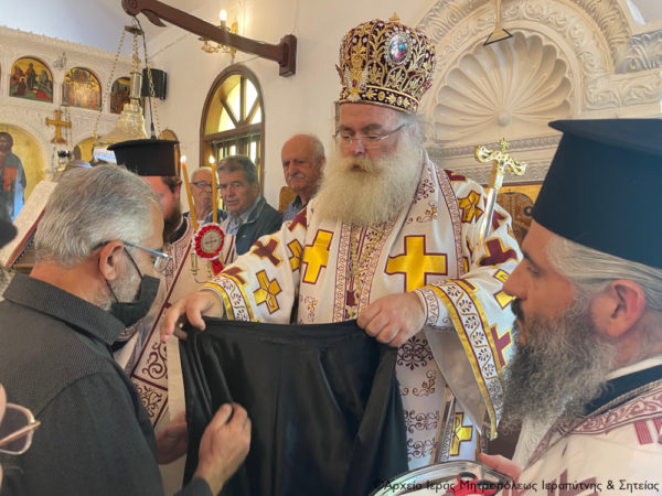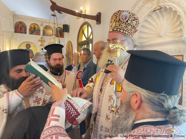 Ο Μητροπολίτης Ιεραπύτνης και Σητείας κ. Κύριλλος χοροστάτησε στην ακολουθία του Όρθρου, ευλόγησε τους προσφερόμενους άρτους και στη συνέχεια ιερούργησε, κήρυξε κατάλληλα τον θείο λόγο και χειροθέτησε σε Αναγνώστη τον κ. Δημήτριο Φραγκιαδάκη.