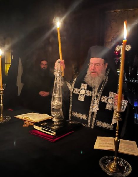 Στο Ιερό Βήμα παρίσταντο συμπροσευχόμενοι οι Εφημέριοι της Αρναίας Παν. Αρχιμανδρίτες π. Παίσιος Σουλτανικάς και π. Αμφιλόχιος Χάιτας, ο Αιδ. Οικ. π. Γεώργιος Τρικκαλιώτης και ο Διάκονος π. Αθανάσιος Σφουγγάρος.