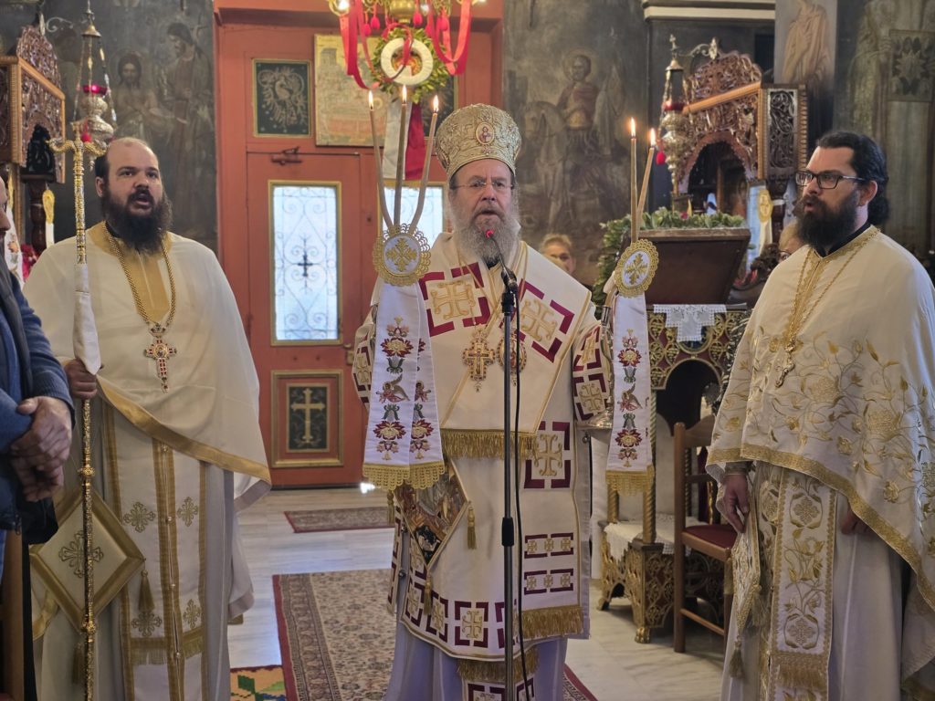 Ο Σεβασμιώτατος κήρυξε τον θείο λόγο με αφορμή την Ευαγγελική Περικοπή της Κυριακής της Σαμαρείτιδος από το κατά Ιωάννην Ευαγγέλιο, όπου σύμφωνα με το Ιερό Κείμενο η Εκκλησία απολαμβάνει τον θαυμάσιο διάλογο της Αγίας Φωτεινής με τον Θεάνθρωπο Κύριο στο φρέαρ του Ιακώβ (Ιωάν. δ΄ 5-42), θεόπνευστο κείμενο όντως που επισφραγίζει: α) τη Θεανθρωπότητα του Κυρίου ημών Ιησού Χριστού, δηλαδή, το ότι ο Κύριός μας είναι τέλειος Θεός και τέλειος Άνθρωπος, ο αναμενόμενος Μεσσίας της Παλαιάς Διαθήκης καθ’ ομολογίαν Του, β) που διακηρύσσει επίσης ότι ο Θεός είναι Πνεύμα και προσεγγίζεται και προσκυνείται πνευματικά και που τέλος γ) διατρανώνει το θέλημα του Ουρανού να προσφέρει στο πλάσμα Του – τον άνθρωπο- «το Αγιοτριαδικό ύδωρ της αληθείας και αθανασίας», στο πρόσωπο και με το πρόσωπο του Χριστού, ο ομιλητής στάθηκε στις Πηγές που αείποτε προσέφερε ο κόσμος στον άνθρωπο για να ξεδιψάσει και πνευματικά και σωματικά και στη μοναδική Πηγή της Ζωής και της Αλήθειας, στον Χριστό μας, που προσφέρεται αέναα για να σωθεί ο κόσμος και να ζήσει!
