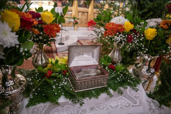 Συμπαραστατούμενος από τον προϊστάμενο του ναού, Πανοσιολογιώτατο Αρχιμανδρίτη π. Χριστόδουλος Στυλιανός, πνευματικό τέκνο του Πρωτοσυγκέλλου π. Ιγνατίου Ριγανά και από τον δραστήριο συνεφημέριό του Αιδ. Οικ. π. Πέτρο Ασβεστόπουλο. Της Θείας Λειτουργίας συμμετείχε και ο εφημέριος του Ιερού Προσκυνήματος Μεγάλης Παναγίας Πανοσιολογιώτατος Αρχιμανδρίτης π. Νικόλαος Τσολούφης και οι Δάκονοι της Μητροπόλεως π. Νικόλαος Τσεπίσης και π. Νικόδημος Κωτινούδης.