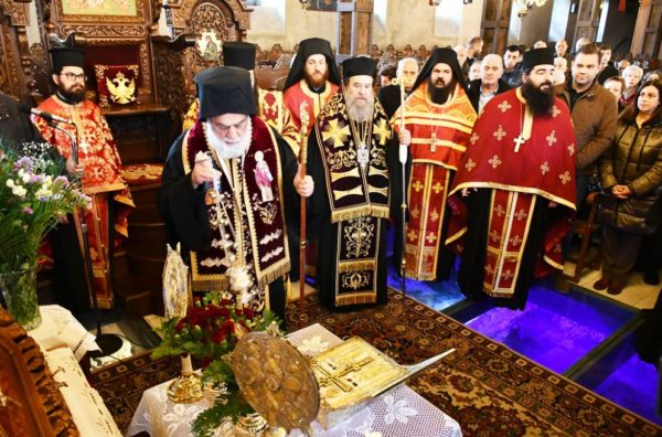 Το Τίμιο Ξύλο κόμισαν οι Ιερομόναχοι Εφραίμ και Μακάριος Ξηροποταμινοί, εκπρόσωποι του Καθηγουμένου της Μονής Ξηροποτάμου Αρχιμανδρίτη Γέροντος Ιωσήφ Ξηροποταμινού.