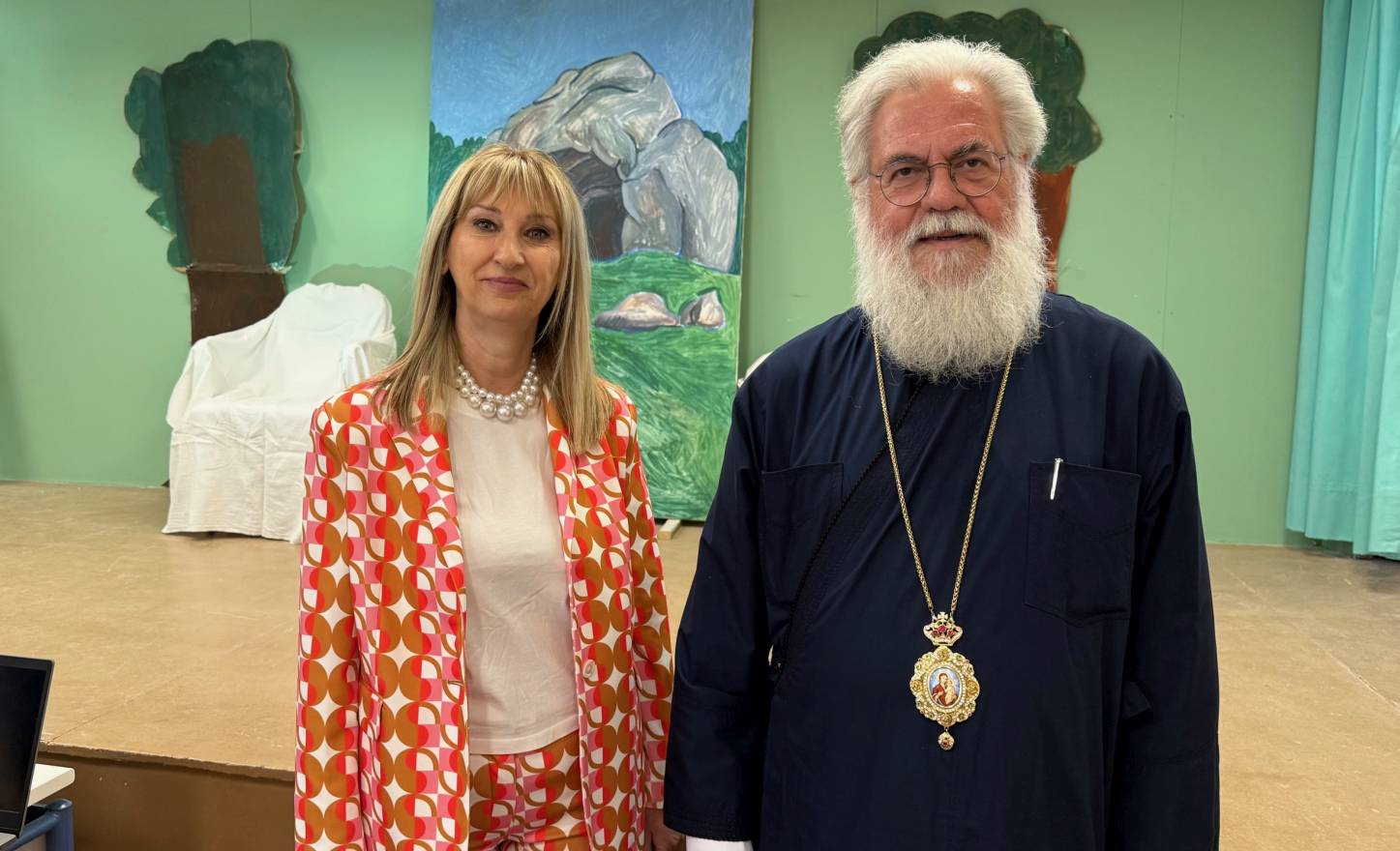 Ο Σεβασμιώτατος μεταξύ άλλων ανέφερε ότι, όντας φιλόλογος και ο ίδιος, είναι ιδιαίτερα χαρούμενος που πρόκειται να παρακολουθήσει ένα θεατρικό έργο εμπνευσμένο από την Οδύσσεια και ευχήθηκε σε όλους επιτυχή λήξη της σχολικής χρονιάς.