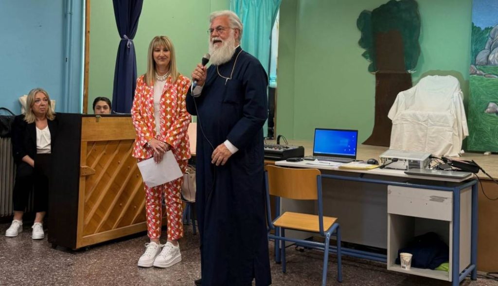 Τη Δευτέρα 26 Μαΐου 2025 ο Σεβασμιώτατος Μητροπολίτης Ιλίου Αχαρνών και Πετρουπόλεως κ. Αθηναγόρας, συνοδευόμενος υπό του διευθυντού του Ιδιαίτερου Γραφείου του κ. Χρήστου Μήτσιου, επισκέφθηκε το 1ᵒ Γυμνάσιο Ζεφυρίου, κατόπιν σχετικής προσκλήσεως της Διευθύντριας του σχολείου κας Δήμητρας Μουρατίδου, για να παρακολουθήσει εκδήλωση στα πλαίσια της λήξης της τρέχουσας σχολικής χρονιάς 2024 – 2025.
