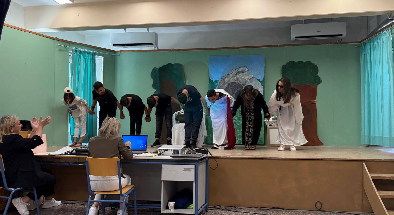 Την παράσταση επιμελήθηκαν οι εκπαιδευτικοί του σχολείου κα Μαρίνα Ρετζίου και κα Μαρία Ρεΐκου, ενώ τα σκηνικά της κας Μελισουργάκη εμπλούτισαν οπτικά την όλη προσπάθεια.