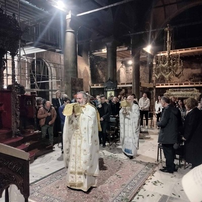 Το κατά Ιωάννην ιερόν Ευαγγέλιον του Εσπερινού ανεγνώσθη εφέτος σε 6 γλώσσες, την Ελληνική, την Λατινική, την Αγγλική, την Σερβική, την Γαλλική και την Γερμανική.