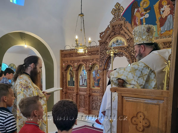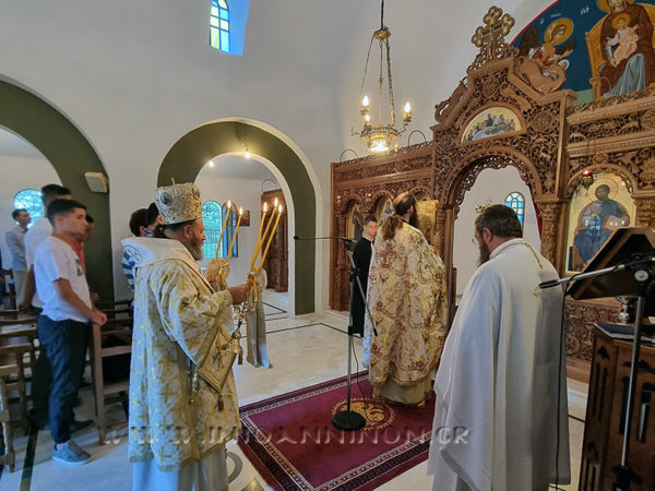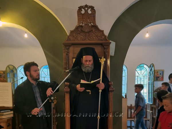 Ο Σεβασμιώτατος Μητροπολίτης Ιωαννίνων κ. Μάξιμος χοροστάτησε του Όρθρου και προέστη της Αρχιερατικής Θείας Λειτουργίας την Κυριακή 30 Ιουλίου 2023, στον Ιερό Ναό της Αγίας Σοφίας εντός της κατασκήνωσης του Ιεραποστολικού Συλλόγου Ιωαννίνων «ο Απόστολος Παύλος» στο Γρεβενίτι Ανατολικού Ζαγορίου, πλαισιούμενος υπό του Πρωτοσυγκέλλου του, Αρχιμανδρίτου του Οικουμενικού Θρόνου π. Θωμά Ανδρέου, καθώς και του π. Εφραίμ Βαρσάνη, εφημερίου της ενορίας Γρεβενιτίου.