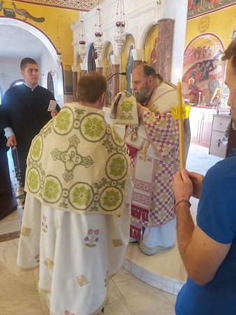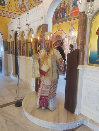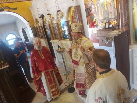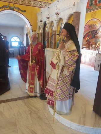 Το απόγευμα της ιδίας ημέρας ο Σεβασμιώτατος μετέβη στον ως άνω Ιερό Ναό όπου χοροστάτησε της Ακολουθίας του Εσπερινού επί τη μνήμη του Οσίου Αθανασίου του Αθωνίτου, καθώς και της Ιεράς Παρακλήσεως προς την Σεβασμία εικόνα της Θεοτόκου Τριχερούσης.