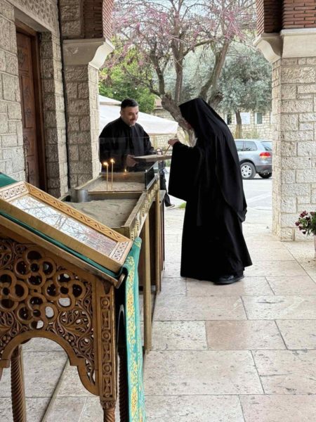 Του Όρθρου χοροστάτησε και προεξήρχε της Θείας Λειτουργίας ο Μητροπολίτης Ιωαννίνων κ. Μάξιμος πλαισιούμενος από τον εφημέριο του Προσκυνήματος π. Ευάγγελο. Μετά το πέρας της Θείας Λειτουργίας ο Σεβασμιώτατος άκουσε στο γραφείο του Ιερού Προσκυνηματικού Ναού τα παραδοσιακά κάλαντα του Λαζάρου.