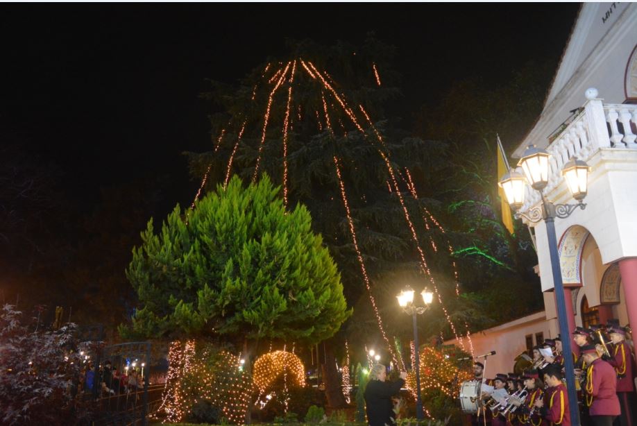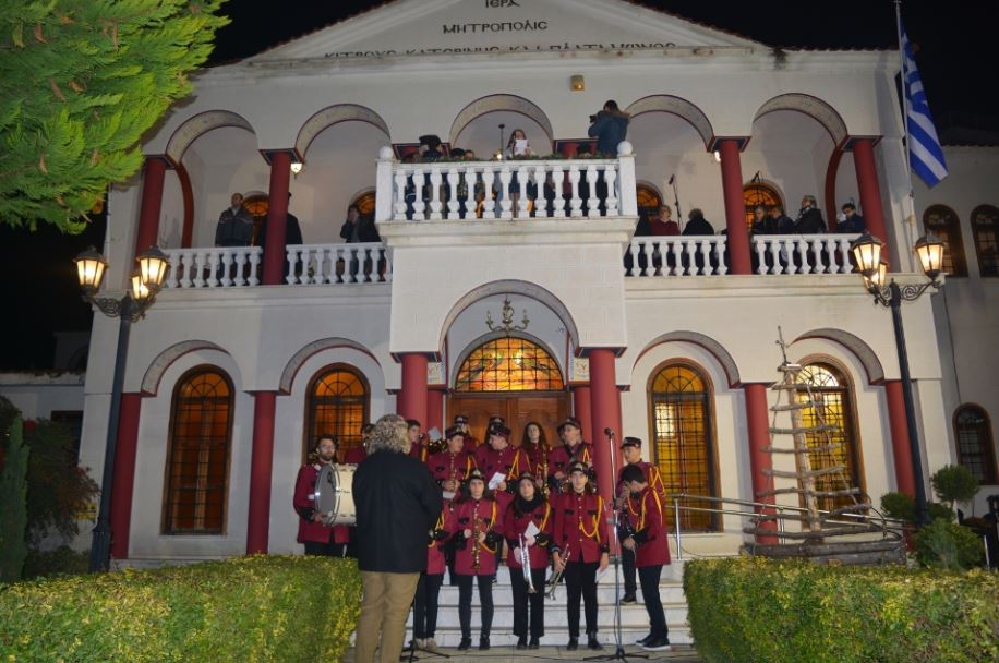 Το βράδυ του Σαββάτου 24 Νοεμβρίου, μετά τον πανηγυρικό Αρχιερατικό Εσπερινό της Πολιούχου Αγίας Αικατερίνης, μπροστά στο Μητροπολιτικό Μέγαρο Κατερίνης, πραγματοποιήθηκε εορταστική Χριστουγεννιάτικη εκδήλωση και φωταγώγηση του φυσικού κέδρου που βρίσκεται στην αυλή του Επισκοπείου.