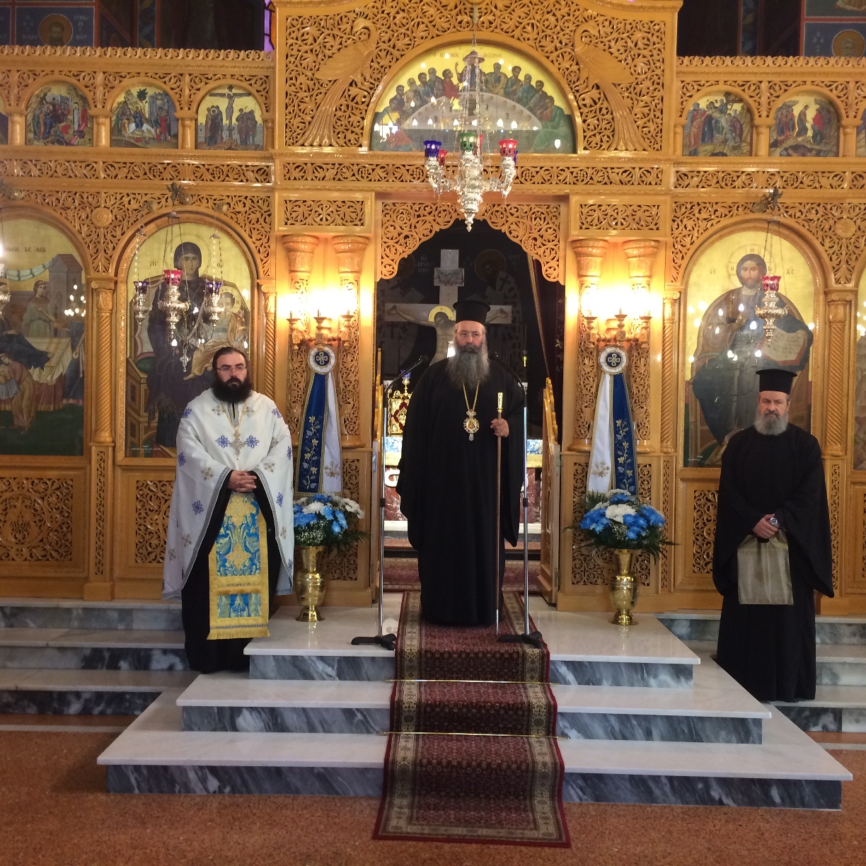 Πριν την απόλυση, ο Πρωτοπρ. Μιχαήλ Κουρσιουμπάς, Πρόεδρος του Συνδέσμου Ιερέων, προσφώνησε τον νέο Ιεράρχη, τον συνεχάρη για την πρόσφατη εκλογή και χειροτονία του και του ευχήθηκε για την ονομαστική εορτή του εκ μέρους των κληρικών της Ιεράς Μητροπόλεως.