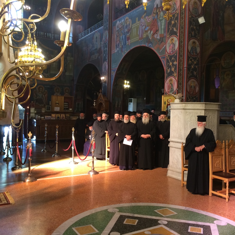 Αμέσως μετά ακολούθησε Ιερατική Σύναξη με την παρουσία τόσο του Σεβασμιωτάτου Μητροπολίτου Κίτρους, Κατερίνης και Πλαταμώνος κ. Γεωργίου όσο και του Σεβασμιωτάτου Αρχιεπισκόπου Μαδάβων κ. Αριστοβούλου.