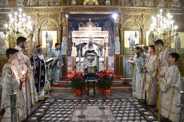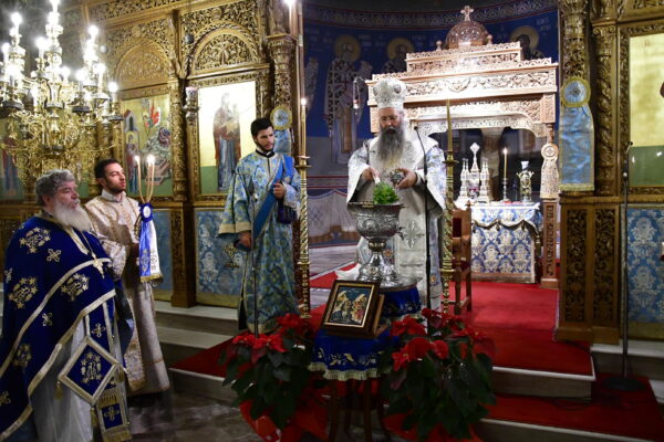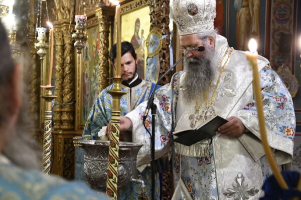 Κατά την Ιερά Αγρυπνία, η οποία περιελάμβανε την Ακολουθία του Όρθρου, τον Μέγα Αγιασμό και τη Θεία Λειτουργία χοροστάτησε ο Σεβασμιώτατος Μητροπολίτης Κίτρους, Κατερίνης και Πλαταμώνος κ. Γεώργιος.