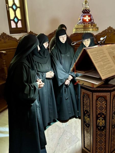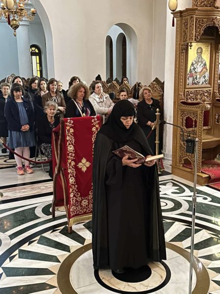 Πριν την απόλυση της Θ. Λειτουργίας, η Ηγουμένη της Ιεράς Μονής, Γερόντισσα Ειρήνη, με θερμούς λόγους καλωσόρισε τους παρισταμένους Αρχιερείς και λοιπούς Κληρικούς. Ιδιαίτερα ευχαρίστησε τον Πανιερώτατο κ. Αθανάσιο, τόσο για τη συμμετοχή του στην εφετινή πανήγυρη όσο και για τη διαχρονική μέριμνα και αγάπη που επιδεικνύει για τη Μοναστική Αδελφότητα.