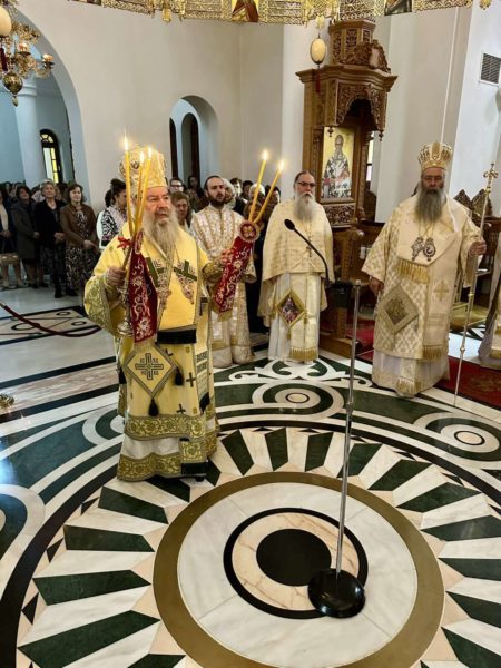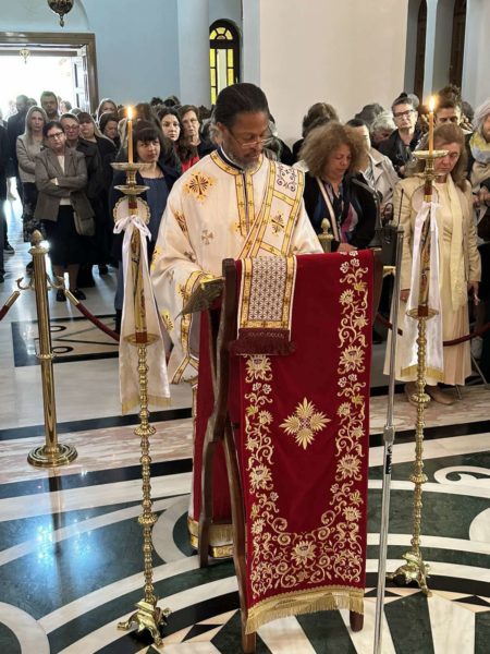 Τον θ. λόγο κήρυξε ο Μητροπολίτης Λεμεσού αναφερόμενος στη σημασία της ζωντανής παρουσίας των Αγίων στη ζωή της Εκκλησίας και την προσκύνηση των ιερών λειψάνων τους.