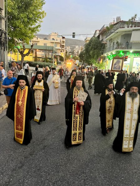 Στη συνέχεια ξεκίνησε η Λιτανεία προεξάρχοντος του Ιεροκήρυκα της Ιεράς Μητροπόλεώς Καιαδσαριανής, Βύρωνος και Υμηττού, Αρχιμανδρίτη Καλλινίκου Νικολάου.