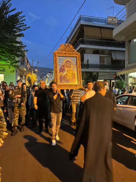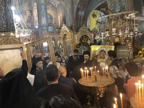 Όσοι είχαν την ιδιαίτερη ευλογία να παραστούν, αντίκρυσαν με δέος την Ιερά Εικόνα και πάλι να ξεχειλίζει μύρο και να καταβρέχει τα χέρια των Ιερέων που τη μετέφεραν, ενώ ο Ιερός Ναός πλημμύρισε από την ευωδία του Μύρου της Παναγίας μας.