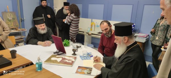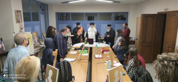 Ο Σεβασμιώτατος, συνοδευόμενος από τον Πρωτοσύγκελο της Ιεράς Μητρόπολης, Πανοσιολογιώτατο Αρχιμανδρίτη π. Ιωακείμ Βενιανάκη, τον Πανοσιολογιώτατο Αρχιμανδρίτη π. Χρυσόστομο Μυλωνά και τον Ιεροδιάκονο π. Σπυρίδων Αλεξόπουλο, μετά την τέλεση του Αγιασμού ευχήθηκε εγκαρδίως στους σπουδαστές της Σχολής ευλογημένη και καλλίκαρπη χρονιά εξαίροντας ταυτόχρονα το θεάρεστο έργο της μύησης στην εκκλησιαστική τέχνη της Αγιογραφίας και της ενασχόλησης με αυτήν.