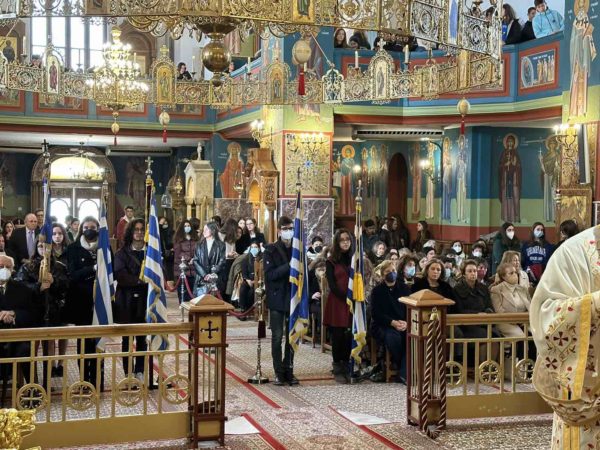Στον Ιερό Μητροπολιτικό Ναό Παναγίας Φανερωμένης Αιγίου τελέστηκε μετά πάσης κατανύξεως και αρχιερατικής λαμπρότητος η Ακολουθία του Όρθρου και της εόρτιας Θείας Λειτουργίας, ιερουργούντος του Σεβασμιωτάτου Μητροπολίτου κ. Ιερωνύμου, παρουσία των διευθυντών, των εκπαιδευτικών και των μαθητών των Σχολείων: 2ου Δημοτικού, 1ου Γυμνασίου, 2ου Γυμνασίου, 1ου Λυκείου και 2ου Λυκείου Αιγίου, της Ένωσης Συνταξιούχων Εκπαιδευτικών Αιγιαλείας και πλήθους πιστών. Τους ύμνους της εορτής απέδωσαν μελωδικά και κατανυκτικά οι καθηγητές Βυζαντινής Μουσικής και Εκπαιδευτικοί κ. Σπυρίδων Οικονομόπουλος και κ. Παναγιώτης Αχιλλιάς, ενώ ο Πανοσιολογιώτατος Αρχιμανδρίτης π. Χρυσόστομος Μυλωνάς ανέγνωσε το Εόρτιο Μήνυμα της Ιεράς Συνόδου της Εκκλησίας της Ελλάδος προς τους μαθητές. Αξίζει να σημειωθεί η συλλογική προσέλευση και η ευλάβεια των μαθητών, καθώς και η συμμετοχή τους στο Μυστήριο της Θείας Ευχαριστίας.