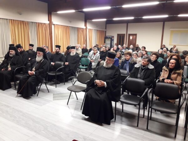 Η χθεσινή ομιλία ολοκληρώθηκε με τον Σεβασμιώτατο Μητροπολίτη κ. Ιερώνυμο, ο οποίος στη σύντομη προσλαλιά του, αρχικά ευχαρίστησε τον π. Αρτέμιο για την παρουσία του αλλά και για το πολύ ωραίο θέμα που ανέπτυξε και που είχε να κάνει με το πιο όμορφο πρόσωπο που υπάρχει και μας έχει δώσει ο Τριαδικός Θεός, την Υπεραγία Θεοτόκο.