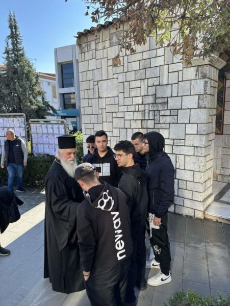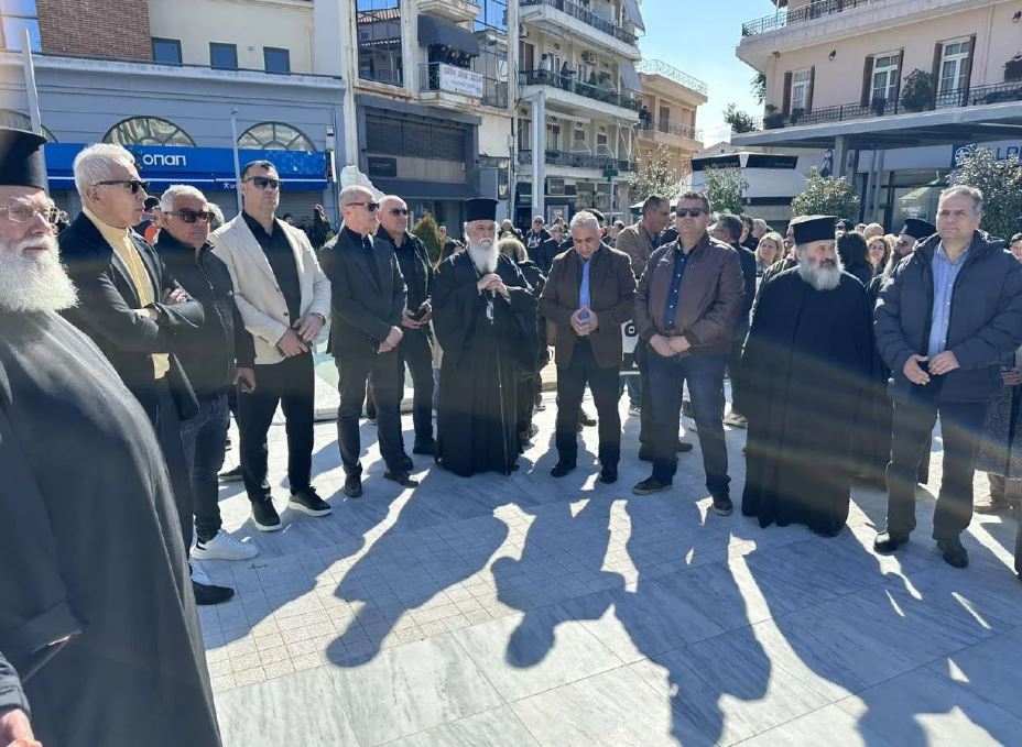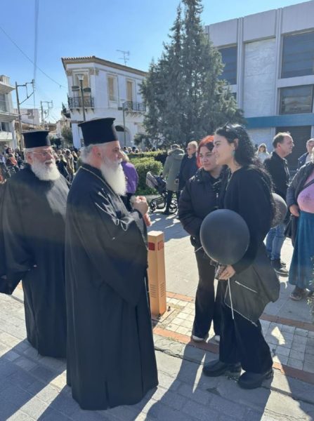 Στη συνέχεια, ο Ποιμενάρχης μαζί με τον Δήμαρχο Αιγιαλείας μετέβησαν στην κεντρική πλατεία Αγίας Λαύρας του Αιγίου, όπου ο Σεβασμιώτατος, στον χαιρετισμό του προς το πλήθος των Αιγιαλέων που κατέκλυσαν με την ηχηρή παρουσία τους την πλατεία και τους δρόμους του Αιγίου, αναφέρθηκε φανερά συγκινημένος στη 19χρονη Αναστασία Παπαγγελή από την Λυκούρια Καλαβρύτων, η οποία ήταν ένα από τα τραγικά θύματα των Τεμπών.