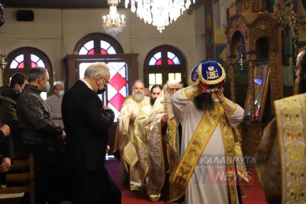 Αρχιερατική Θεία Λειτουργία προεξάρχοντος του Σεβασμιωτάτου Μητροπολίτη Καλαβρύτων και Αιγιαλείας κ. Ιερωνύμου τελέστηκε σήμερα στoν Καθεδρικό Ιερό Ναό Κοιμήσεως της Θεοτόκου Καλαβρύτων.