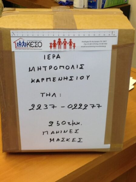 Η Διευθύντρια του ΚΕΣΟ κα Μαίρη Πίνη μέσω των εθελοντών Νίκου Σοφιανίδη και Κωνσταντίνου Σαλεβουράκη μερίμνησε, ώστε να σταλούν τάχιστα οι υφασμάτινες μάσκες στην Ι. Μ. Καρπενησίου και ο σεβασμιώτατος κ. Γεώργιος να ανταποκριθεί στην προσφορά της Μητρόπολης. Εκφράζει δε την ικανοποίηση της, για την συγκεκριμένη δράση παρασκευής προστατευτικών μασκών από τα Εργαστήρια Δεξιοτήτων του ΚΕΣΟ δεδομένου ότι η προστατευτική μάσκα εξ ανάγκης, όχι μόνο θα είναι απαραίτητη, στα νοσοκομεία, στα Μέσα Μαζικής Μεταφοράς, στα ταξί, στα σχολεία, στις Εκκλησίες, στα καταστήματα, στους χώρους δουλείας, κλπ αλλά θα είναι υποχρεωτική στην καθημερινότητα μας, ώστε θα πρέπει να μας γίνει τρόπος και στάση ζωής, ώστε για να είμαστε ασφαλείς και να παραμείνουμε ασφαλείς εμείς και οι διπλανοί μας.