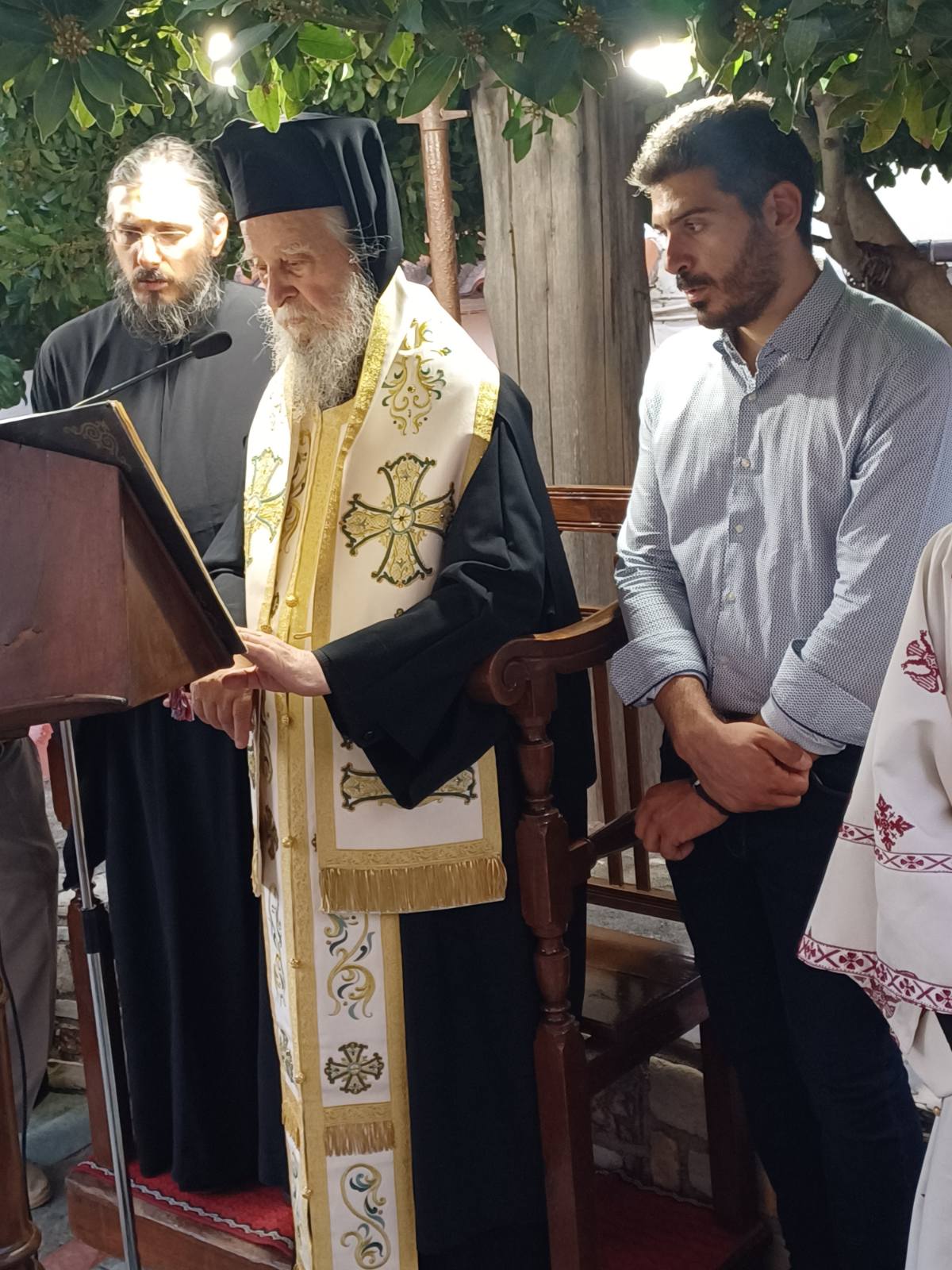 Την κυριώνυμο  ημέρα της εορτής της Αποδόσεως της Κοιμήσεως της Θεοτόκου ο Σεβασμιώτατος Μητροπολίτης Καρυστίας και Σκύρου κ. Σεραφείμ ετέλεσε στον προαύλειο χώρο του καθολικού της πανηγυρίζουσας   ιεράς μονής την Αρχιερατική Θεία Λειτουργία  επάνωθεν του Επιταφίου της Παναγίας με συλλειτουργούς τον Πρωτοσύγκελλο Πανοσ Αρχιμ Νικόδημο Πόγκα και τη χορεία ιερέων και των Διακόνων.