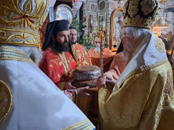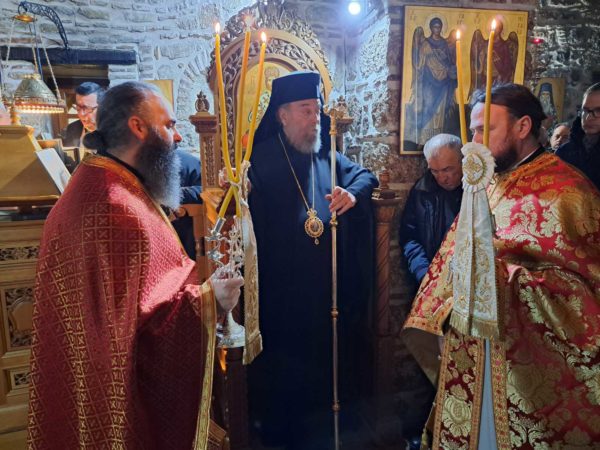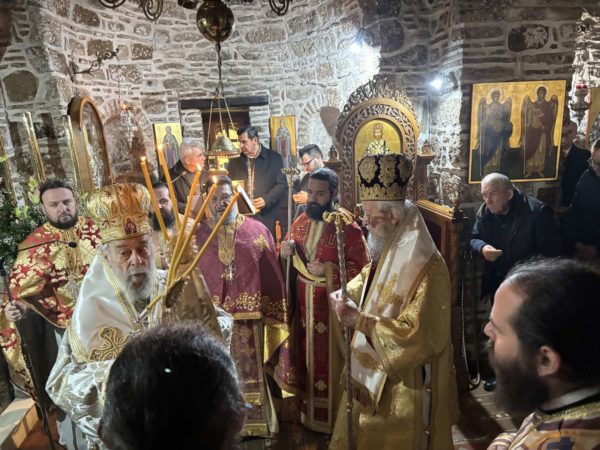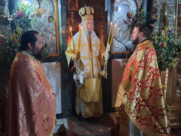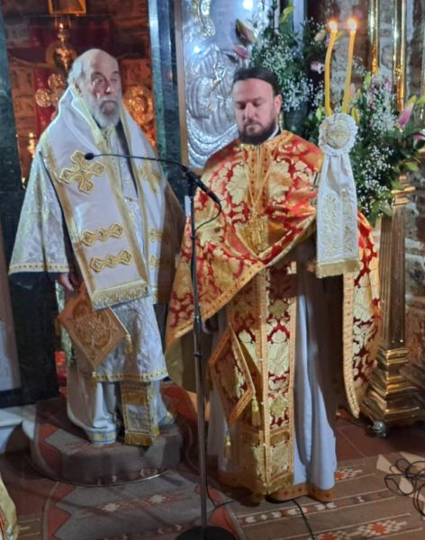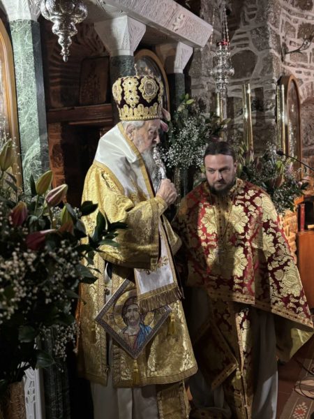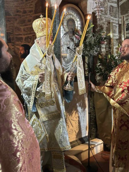 Την κυριώνυμο ημέρα της εορτής, τελέσθηκε το Αρχιερατικό Συλλείτουργο, προεξάρχοντος του Σεβασμιωτάτου Μητροπολίτου Καρυστίας και Σκύρου κ. Σεραφείμ, και συνιερουργούντος του Σεβασμιωτάτου Μητροπολίτου Ειρηνουπόλεως κ. Νικάνδρου με επικεφαλής τον Πρωτοσύγκελλο Αρχιμ. Νικόδημο Πόγκα, και την χορεία ιερέων και συμπροσευχόμενο τον Αρχιμ. Ιάκωβο Μπαλωμένο, Καθηγούμενο της Ιεράς Μονής Κοιμήσεως της Θεοτόκου – Αγίου Παρθενίου Μακρυμάλλης Ψαχνών, εκ της γειτονικής Ιεράς Μητροπόλεως Χαλκίδος Ισταίας και Βορείων Σποράδων.