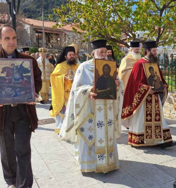 Μετά το πέρας της θείας ευχαριστίας ακολούθησε η λιτάνευση των ιερών εικόνων πέριξ του ιερού ναού και το ιερό μνημόσυνο των προμάχων της ορθοδόξου πίστεως.