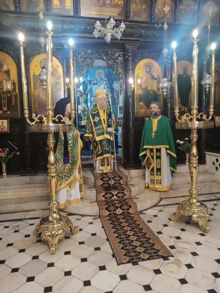 Στον ιερό ναό Αγίου Νικολάου Καρύστου τελέσθηκε η ακολουθία της Σταυροπροσκυνήσεως με την πρέπουσα εκκλησιαστική τάξη, και στη συνεχεία η Αρχιερατική Θεία Λειτουργία προεξάρχοντος του εκ Στύρων Μητροπολίτη Ειρηνουπόλεως εκ του Οικουμενικού Πατριαρχείου κ. Νικάνδρου.