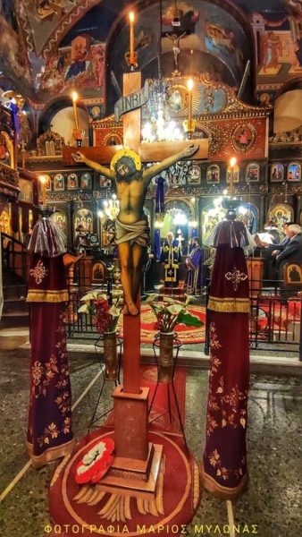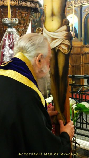 Η ιερά ακολουθία κορυφώθηκε με την έξοδο του Εσταυρωμένου όπου εψάλει το Δοξαστικό Σήμερον Κρεμάται επι Ξύλου ενώπιον του Εσταυρωμένου από τον Σεβασμιώτατο κ. Σεραφεϊμ και τον Πρωτοψάλτη του Μητροπολιτικού Ναού κ. Ευάγγελο Στάμου με την συμμετοχή των πιστών που συνέρευσαν στην κατανυκτική ακολουθία.