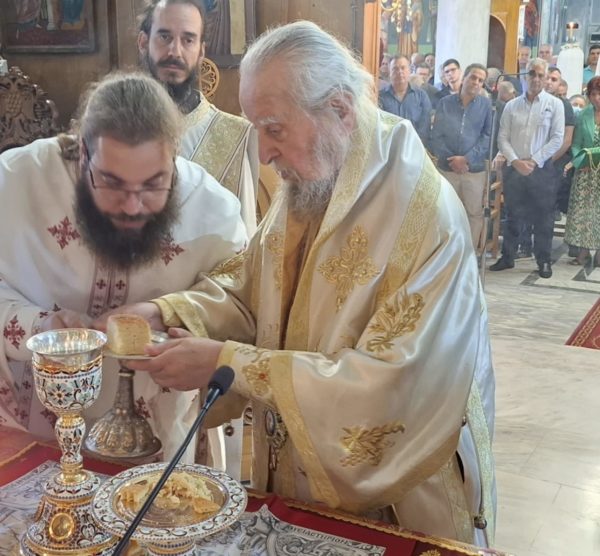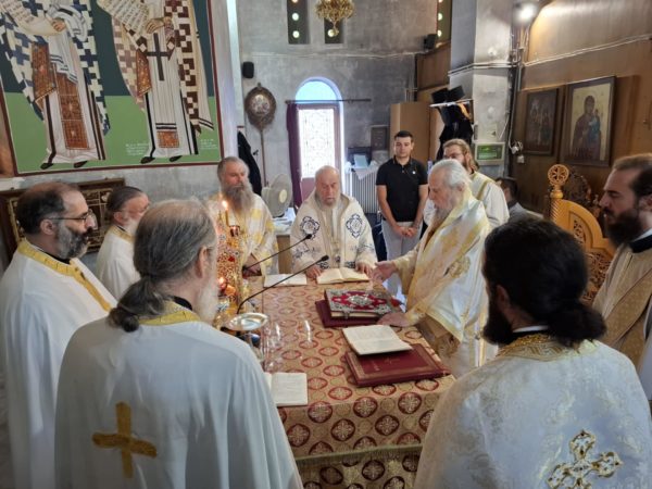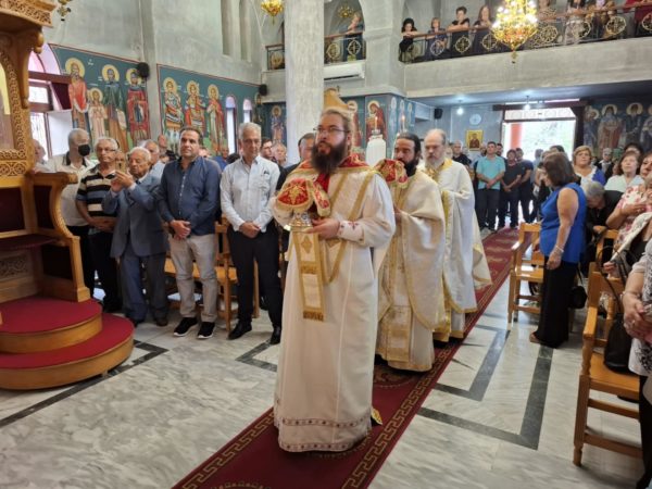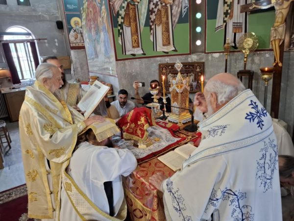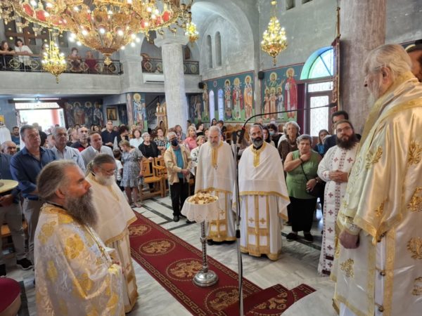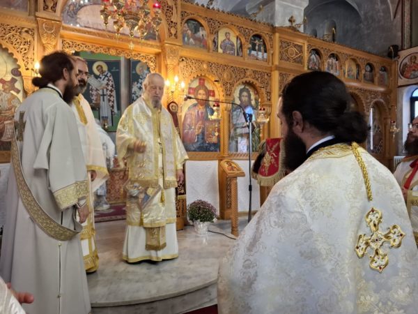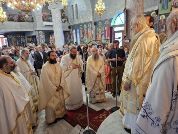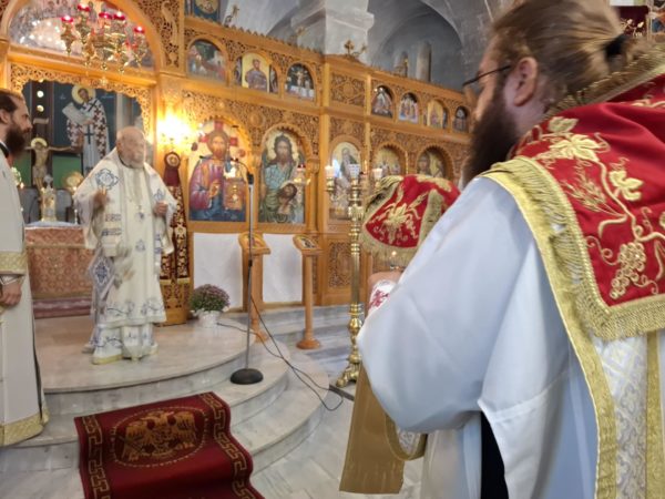 Εν συνεχεία ακολούθησε το Αρχιερατικό Συλλείτουργο προεξάρχοντος του Σεβασμιωτάτου Μητροπολίτου Καρυστίας και Σκύρου κ. Σεραφείμ με συνιερουργό τον εκ Στύρων Σεβασμιώτατο Μητροπολίτη Ειρηνουπόλεως του Οικουμενικού Πατριαρχείου κ. Νίκανδρο, συμπαραστατούμενοι από τον Πρωτοσύγκελλο Πανοσ. Αρχιμανδρίτη Νικόδημο Πόγκα, τον Πρωτοπρεσβύτερο Κωνσταντίνο Κοντογιαννάκο, εφημέριο Ιερού Ναού Αγίων Αποστόλων Παραλίας Πετριών, τον Οικονόμο Αναστάσιο Γανωτή, εφημέριο Ιερού Ναού Τιμίου Προδρόμου Νεοχωρίου, τους Πρεσβυτέρους π. Θεοδώρο Σπαγγούρο, εφημέριο ενορίων Ορίου – Πυργίου, π. Ανάργυρο Τσιπόκα, εφημέριο Ιερού Ναού Κοιμήσεως της Θεοτόκου Πετριών και εκτελούντα εφημεριακά καθήκοντα του Ιερού Ναού, τους Διακόνους Στυλιανό Πεταχτή, Απόστολο Μπάκουλη και συμπροσευχόμενο τον συνταξιούχο Πρωτοπρ. Γεώργιο Πετρόχειλο.