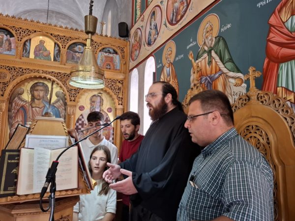 Επίσης στο αναλόγιο απέδωσε τους ύμνους ο ελκόμενος από τον Οξύλιθο μουσιλογιώτατος Μοναχός Νικηφόρος με τον Πρωτοψάλτη Ιερού Ναού Τιμίου Προδρόμου Νεοχωρίου κ. Ιωάννη Γανωτή και με την συμμετοχή άλλων ιεροψαλτών.