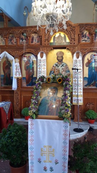 Την κυριώνυμο ημέρα τελέστηκε ο Όρθρος και η Θ. Λειτουργία, ιερουργούντος του Αρχιμ. Ιακώβου Βασιλείου, Εφημέριου του Ι. Ν. Ταξιαρχών Μαρμαρά και συλλειτουργούντων του Αρχιμ. Χαράλαμπου Σκαρλή, Εφημέριου του Ι. Μ. Ναού Αγ. Νικολάου Πολυγύρου, του Πρωτοπρ. Νικολάου Στάθη, Εφημεριου του Ιεράς Μονής Αγ. Ιωάννου Θεολόγου Σουρωτής, του Διακόνου π. Λεωνίδα.
