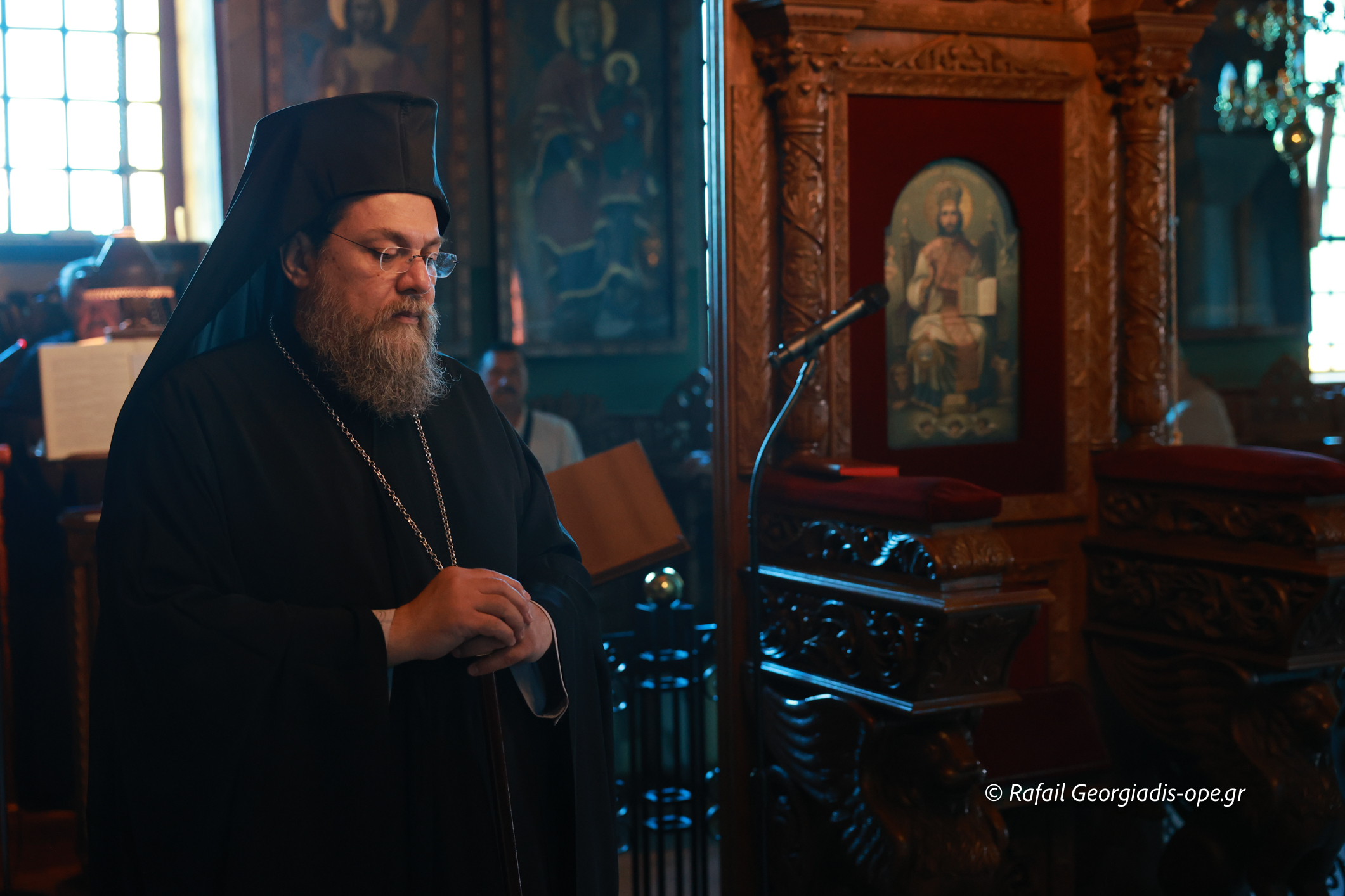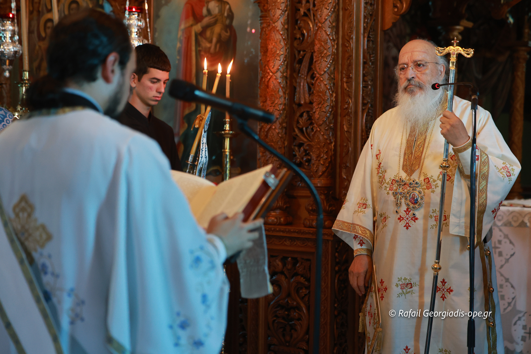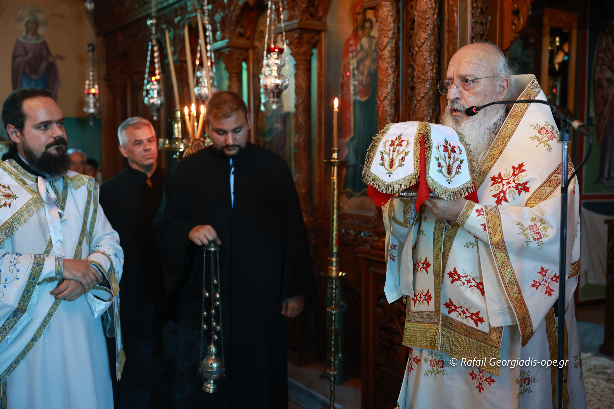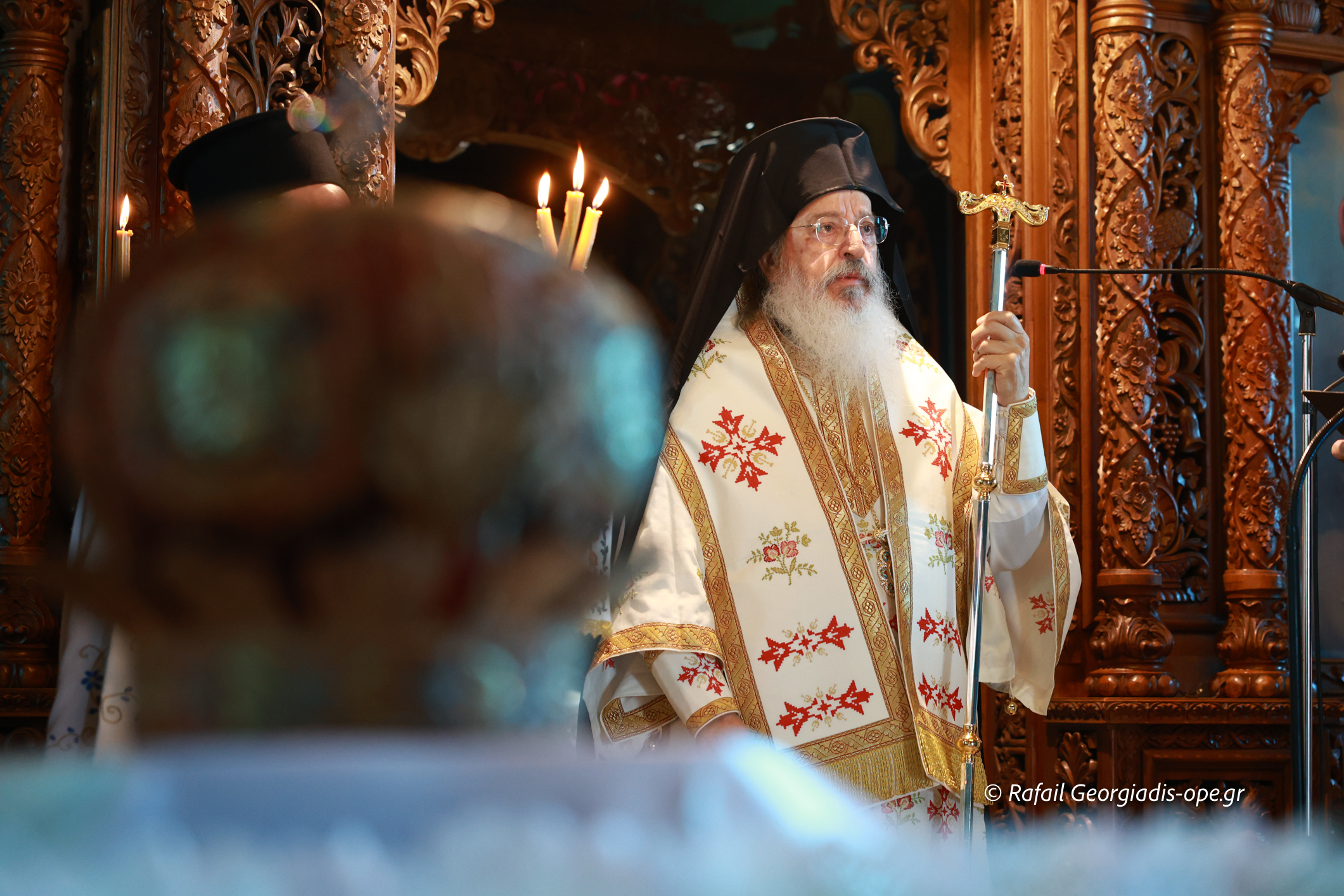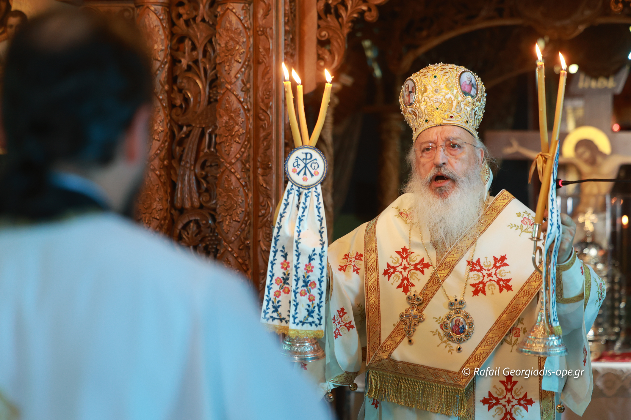 Τον Σεβασμιώτατο πλαισίωσαν ο προϊστάμενος του ναού, Αρχιμανδρίτης Ιάκωβος Βασιλείου και ο διάκονος της Μητρόπολης. Πιστοί από την τοπική κοινωνία και επισκέπτες της περιοχής παρακολούθησαν τη Θεία Λειτουργία.