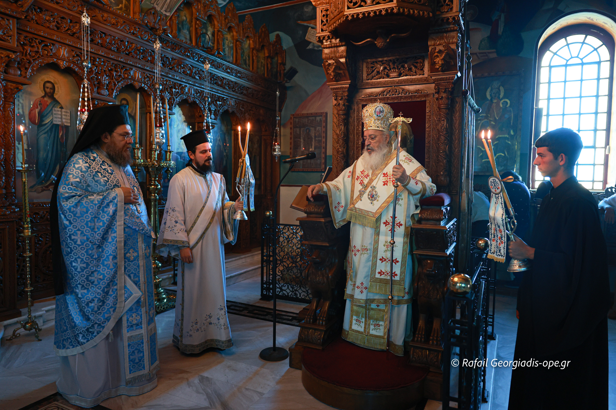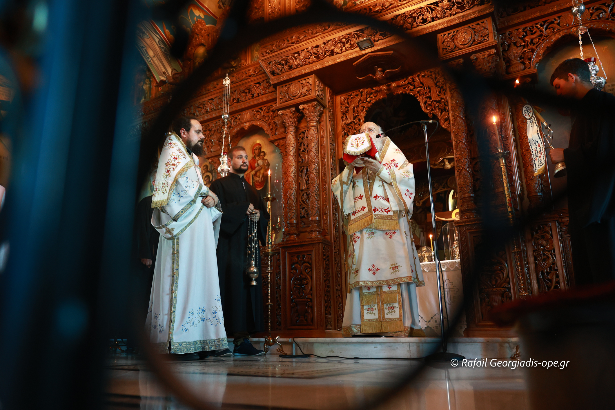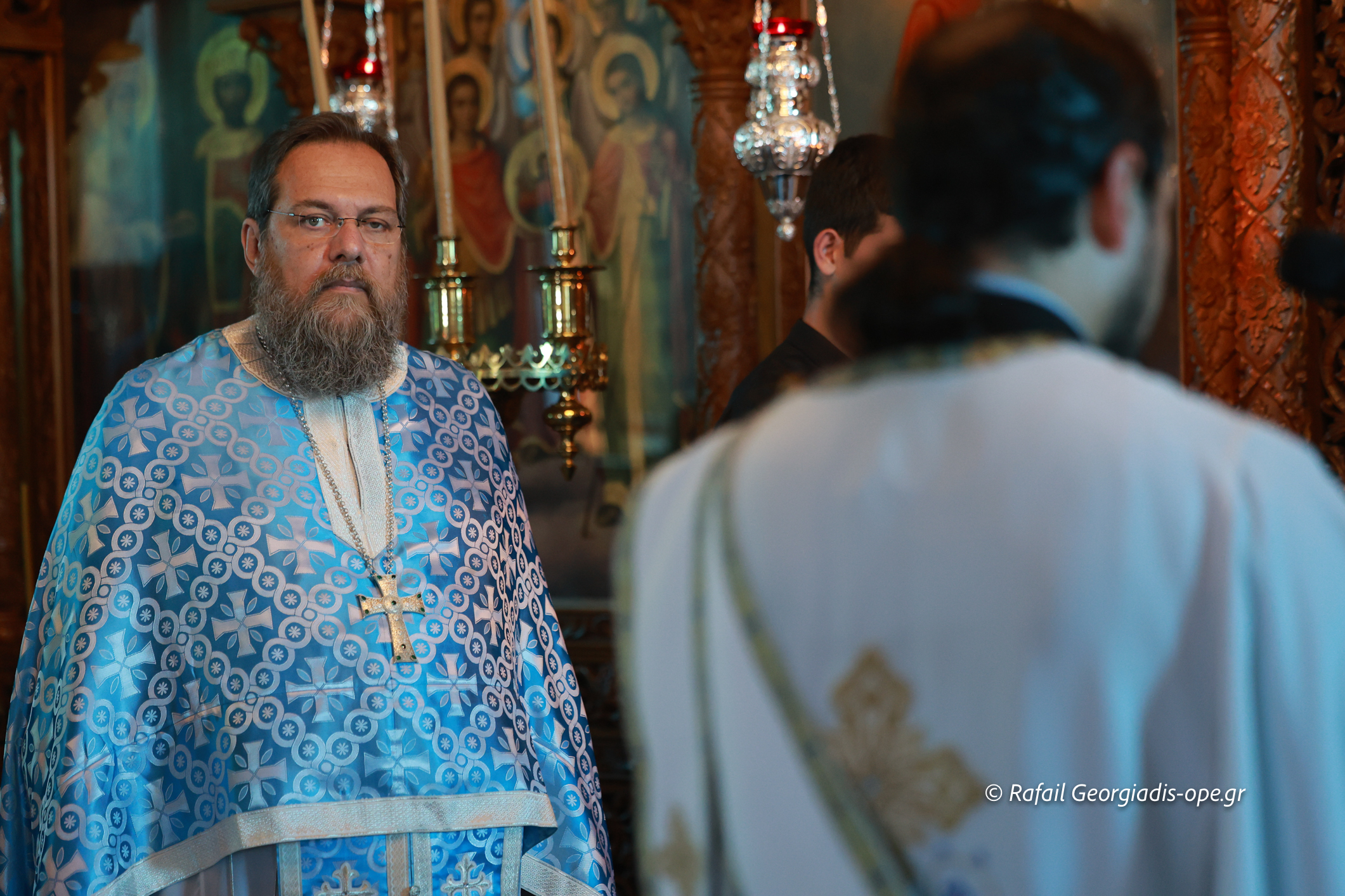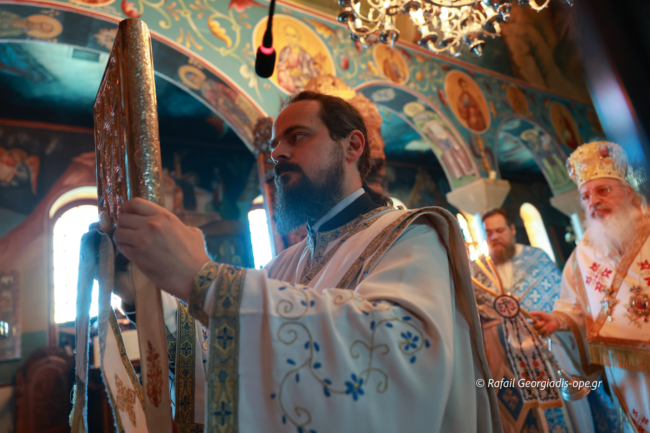 Τον Σεβασμιώτατο πλαισίωσαν ο προϊστάμενος του ναού, Αρχιμανδρίτης Ιάκωβος Βασιλείου και ο διάκονος της Μητρόπολης. Πιστοί από την τοπική κοινωνία και επισκέπτες της περιοχής παρακολούθησαν τη Θεία Λειτουργία.