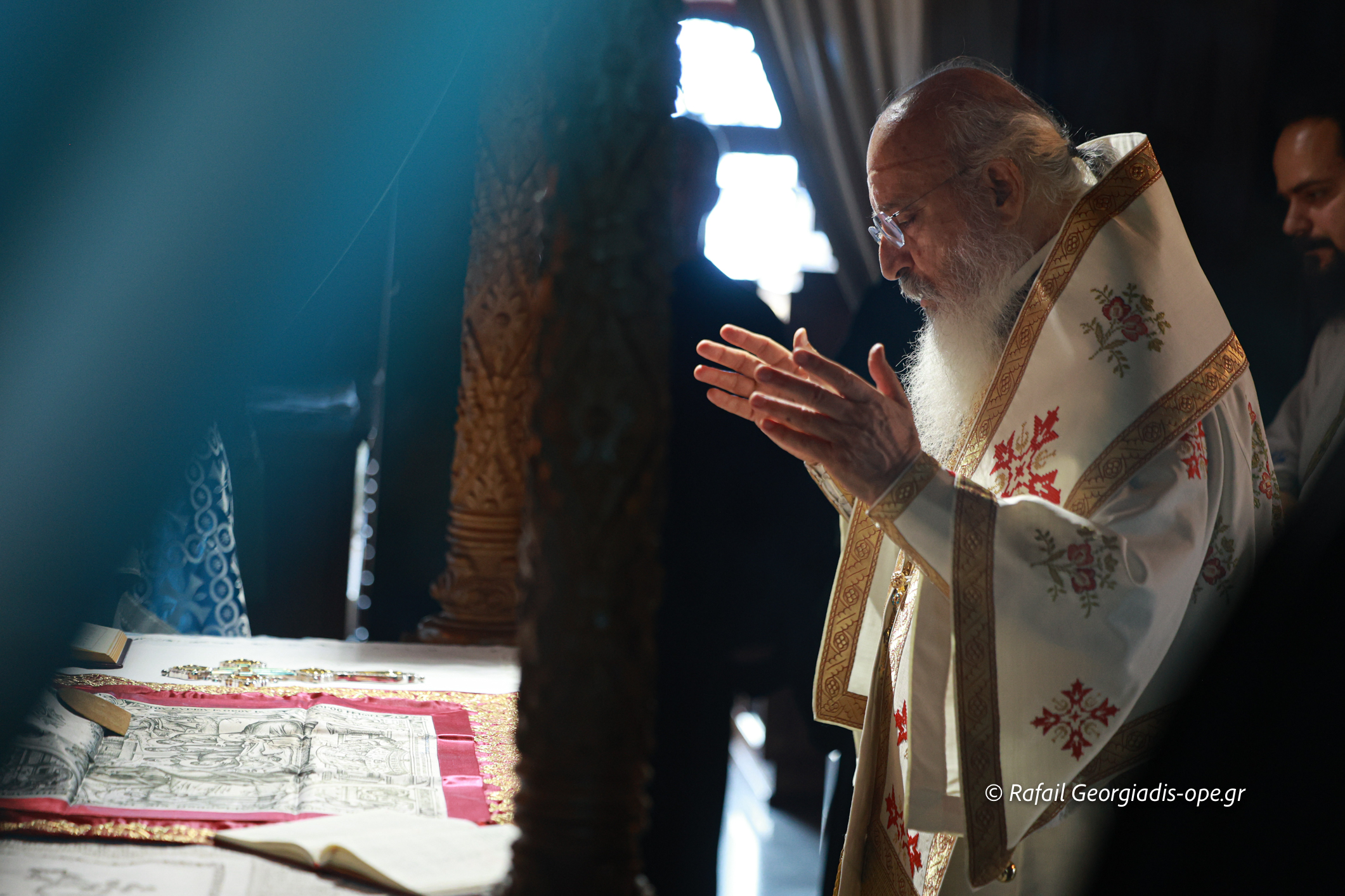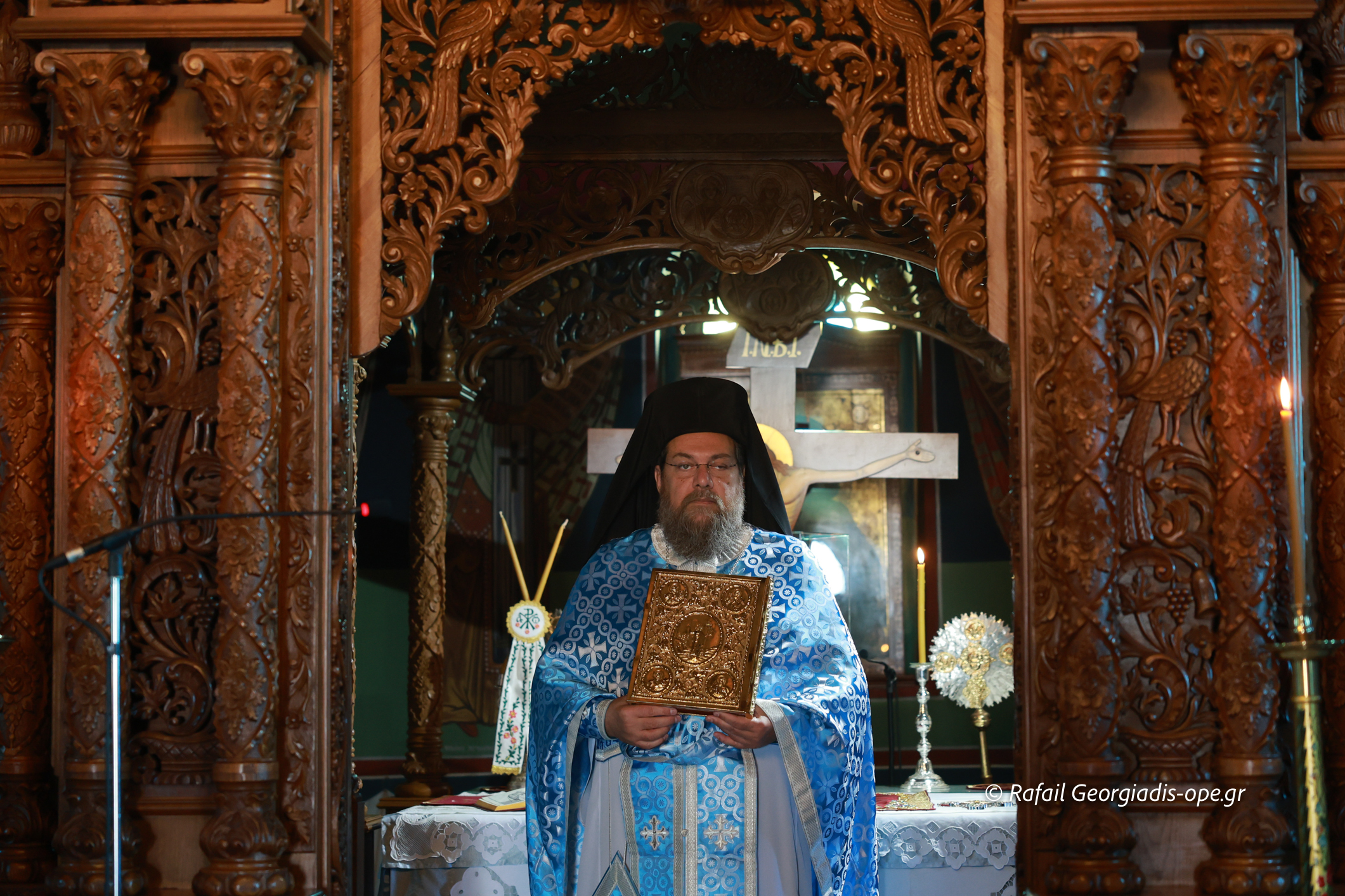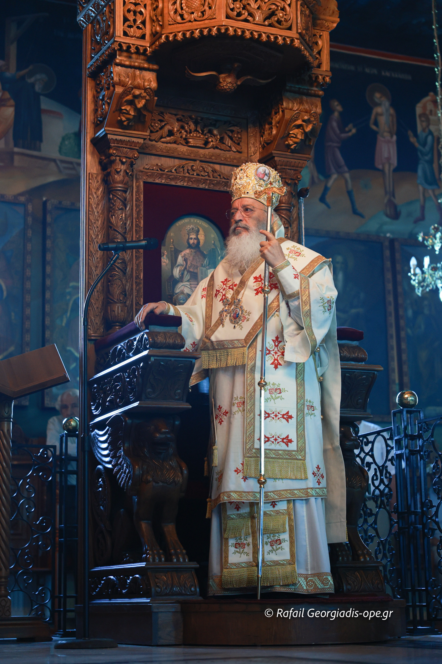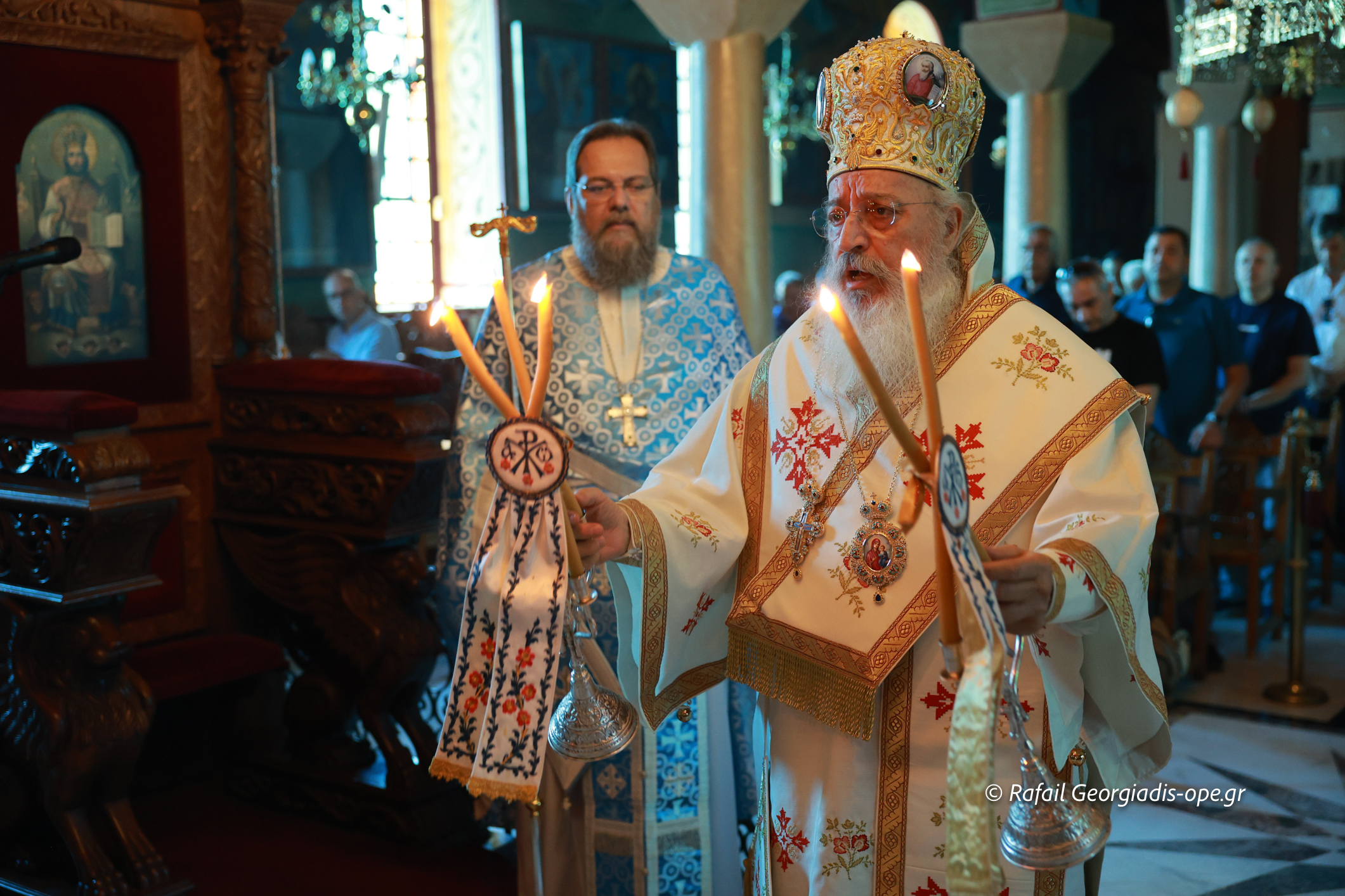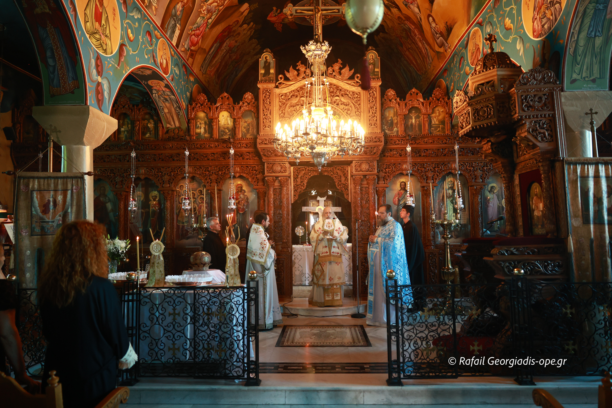 Τον Σεβασμιώτατο πλαισίωσαν ο προϊστάμενος του ναού, Αρχιμανδρίτης Ιάκωβος Βασιλείου και ο διάκονος της Μητρόπολης. Πιστοί από την τοπική κοινωνία και επισκέπτες της περιοχής παρακολούθησαν τη Θεία Λειτουργία.